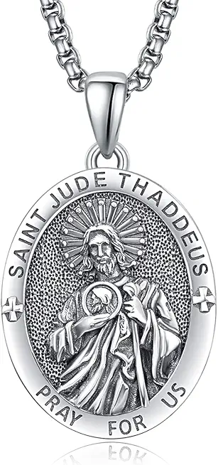 925 Sterling Silver Patron Saint Medals | Amulet Necklace Protection Jewelry for Men with 2.5mm 22"+2" Rolo Chain