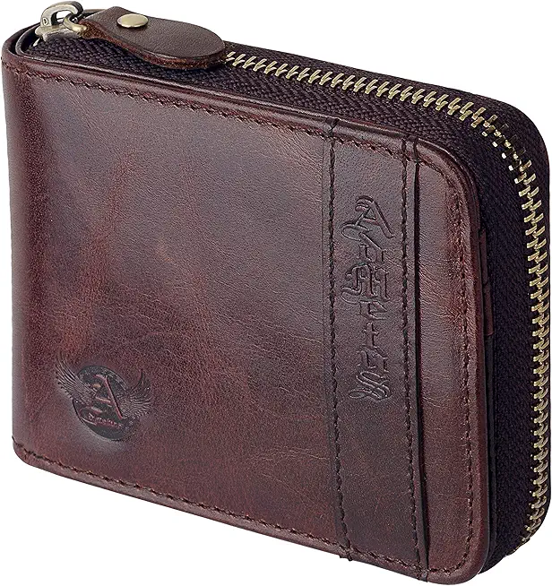 Admetus Gift-Ready Zip Leather Wallet (genuine leather, elegant packaging, 0.6 lbs). Thoughtful present. 1-year warranty.