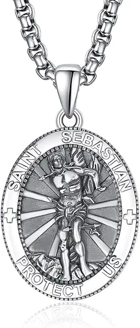 925 Sterling Silver Patron Saint Medals Amulet Necklace Protection Jewelry for Men with 2.5mm 22"+2" Round Box Chain